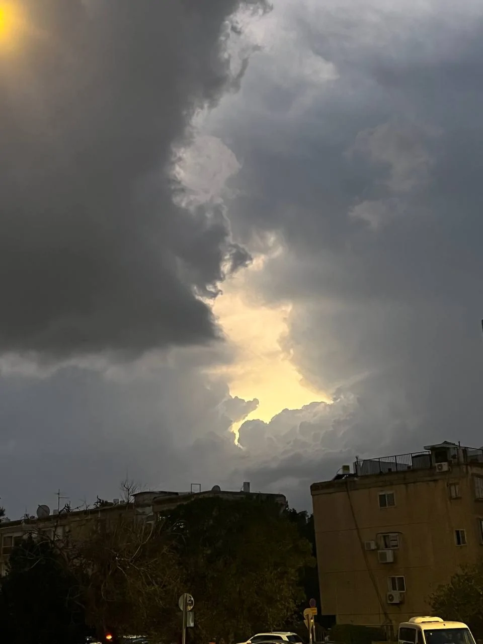 - גשם בקרית אונו. מלוה בסו״ר. מלווה בברד. אלון