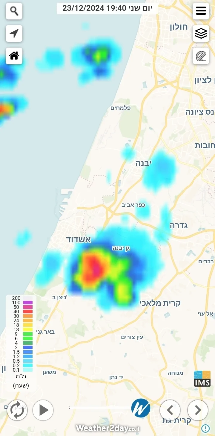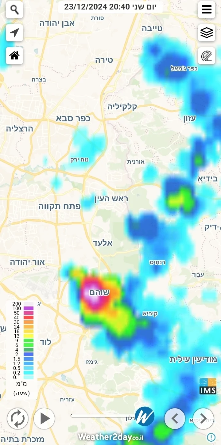 - אפילו מפה רואים את הסופות רעמים באזור ראשון המוביל הבטוח