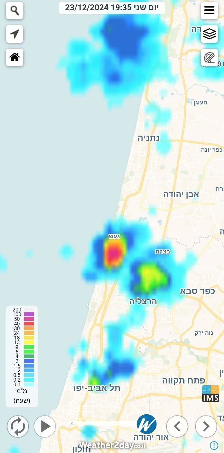 - נראה שקיים סיכוי סביר לגשם גם באזור מישור החוף המרכזי הלילה ומחר בבוקר איתן