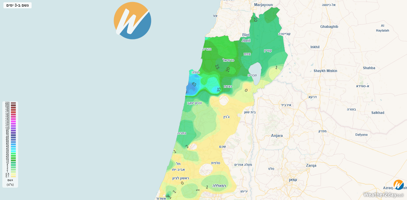 השיא היום הוא באזור אנטליה עם כ-80 ממ