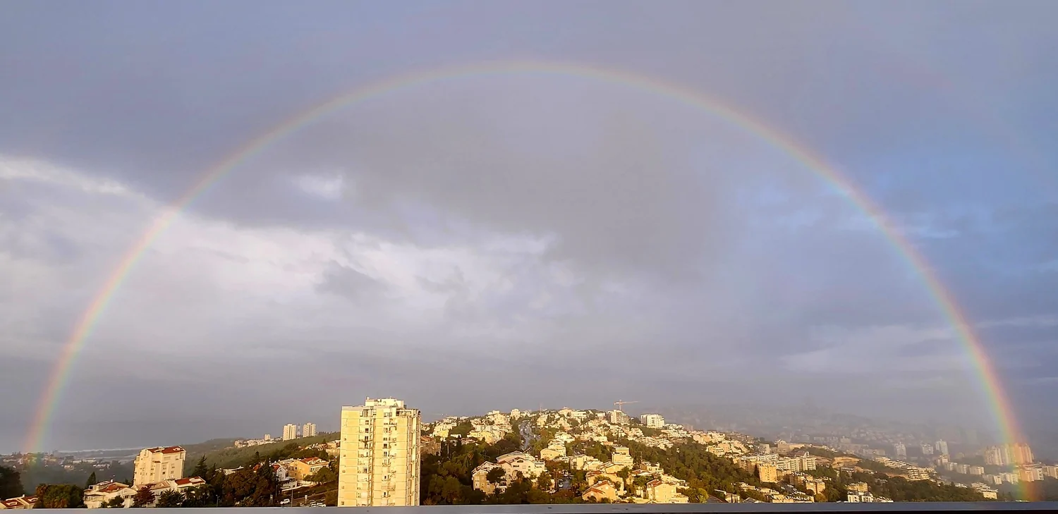 - קשת מושלמת מעל חיפה הגשומה מונט