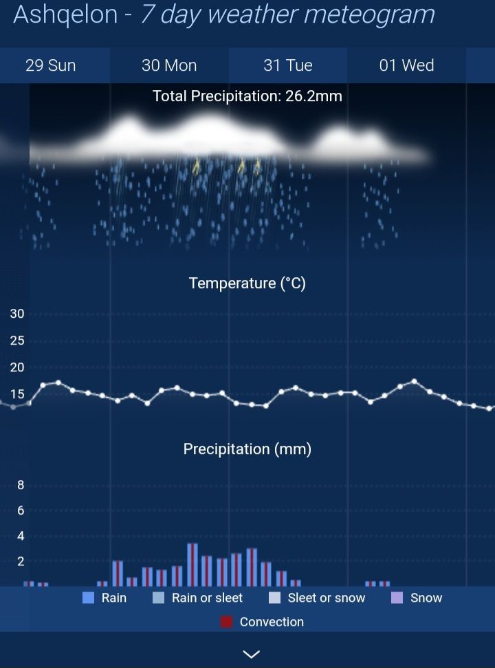 התחזית היא לשישי-שלישי ואני מניח שבכל מה שנוגע לאזורים שדרומית לחיפה עיקר הגשם החזוי הוא לשני-שלישי