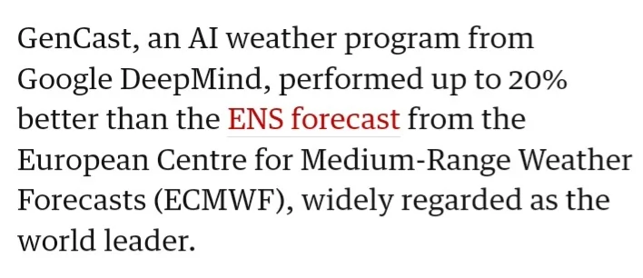 GenCast מייצר תחזיות המהוות שיפור של 20% לעומת EC
