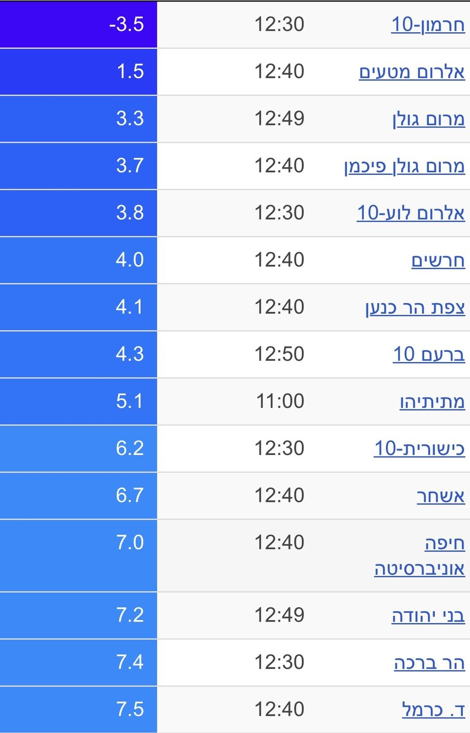 אבל מה שמפתיע זה הטמפרטורה שממשיכה לרדת מהלילה למרות השעה, כרגע 8 מעלות בכרמיאל בשעה כמעט 1 בצהריים!