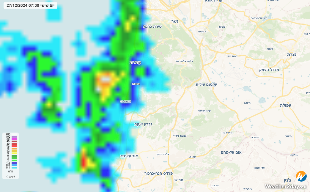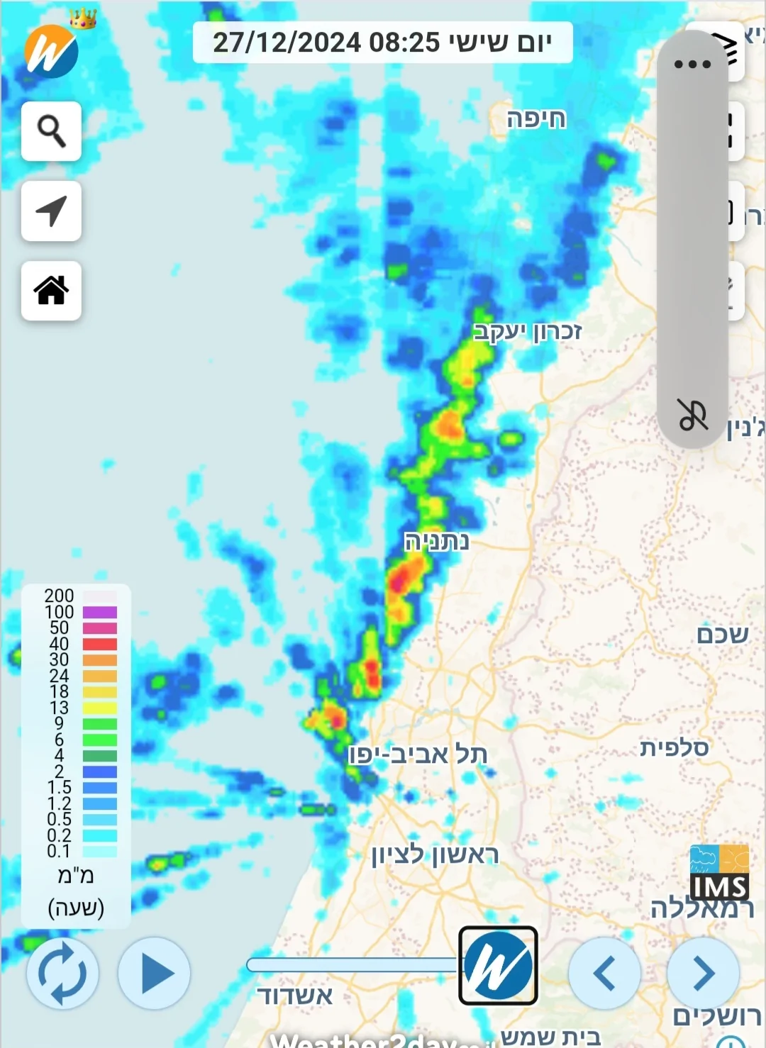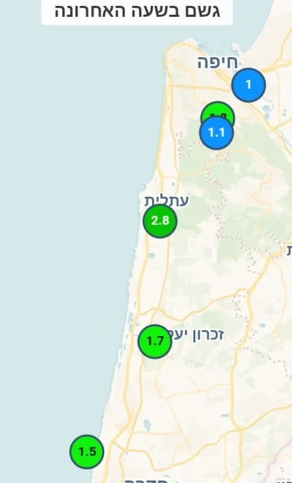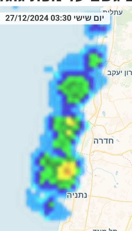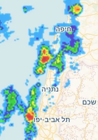 - קו גשם חזק מתל אביב ועד זכרון יעקב פז