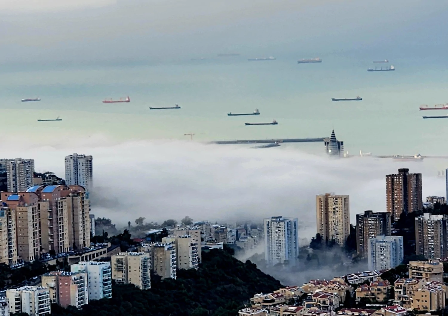 - הגשם פסק בחיפה והופיעו ערפילים ממזרח מונט