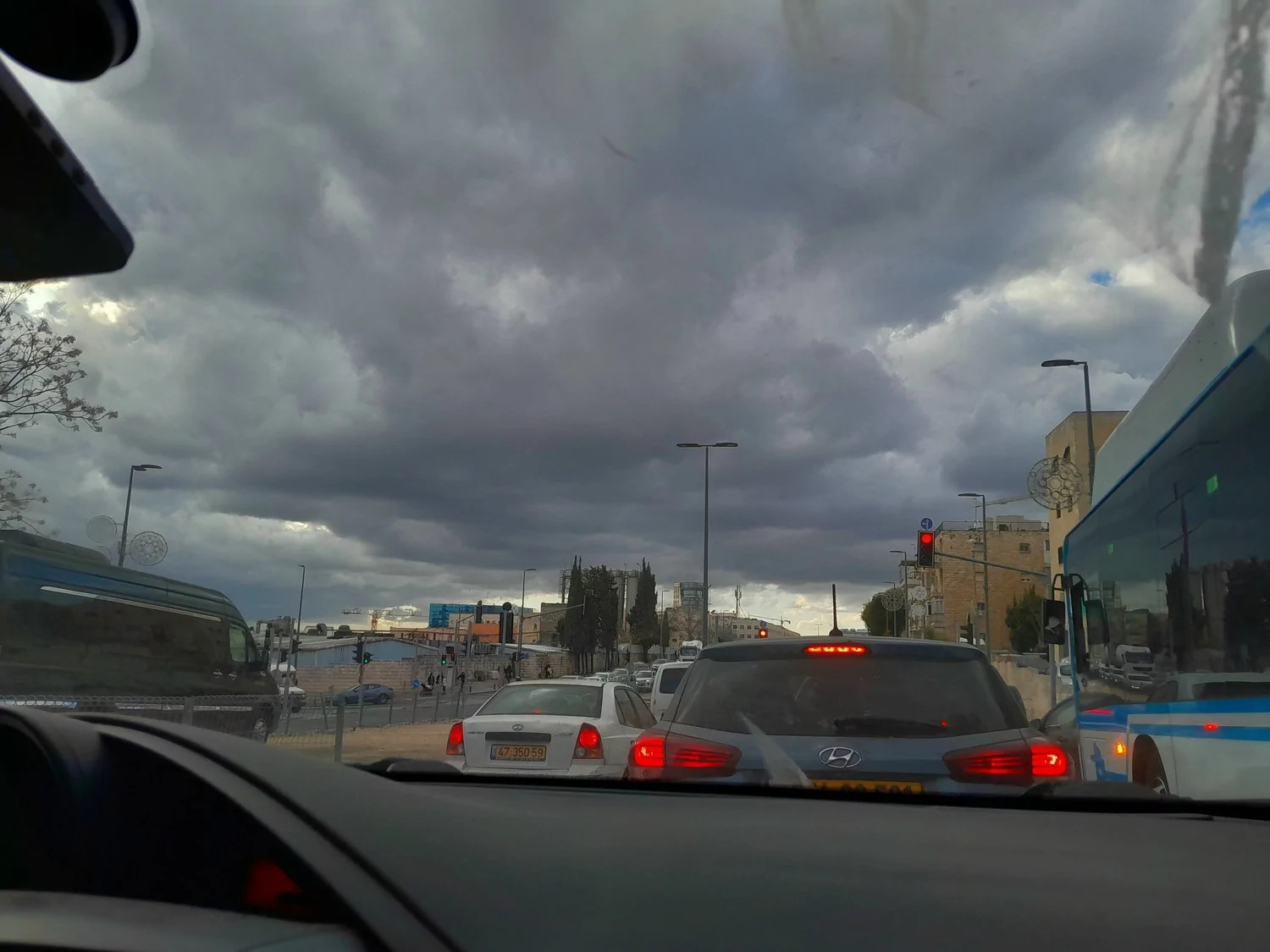 לפני כן היה גשם קל-בינוני בשעה האחרונה. מדי פעם יש רעמים וברקים