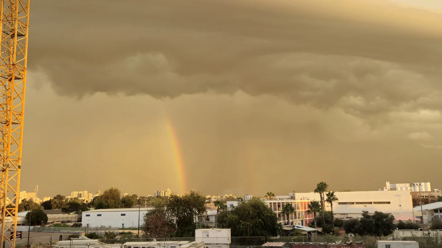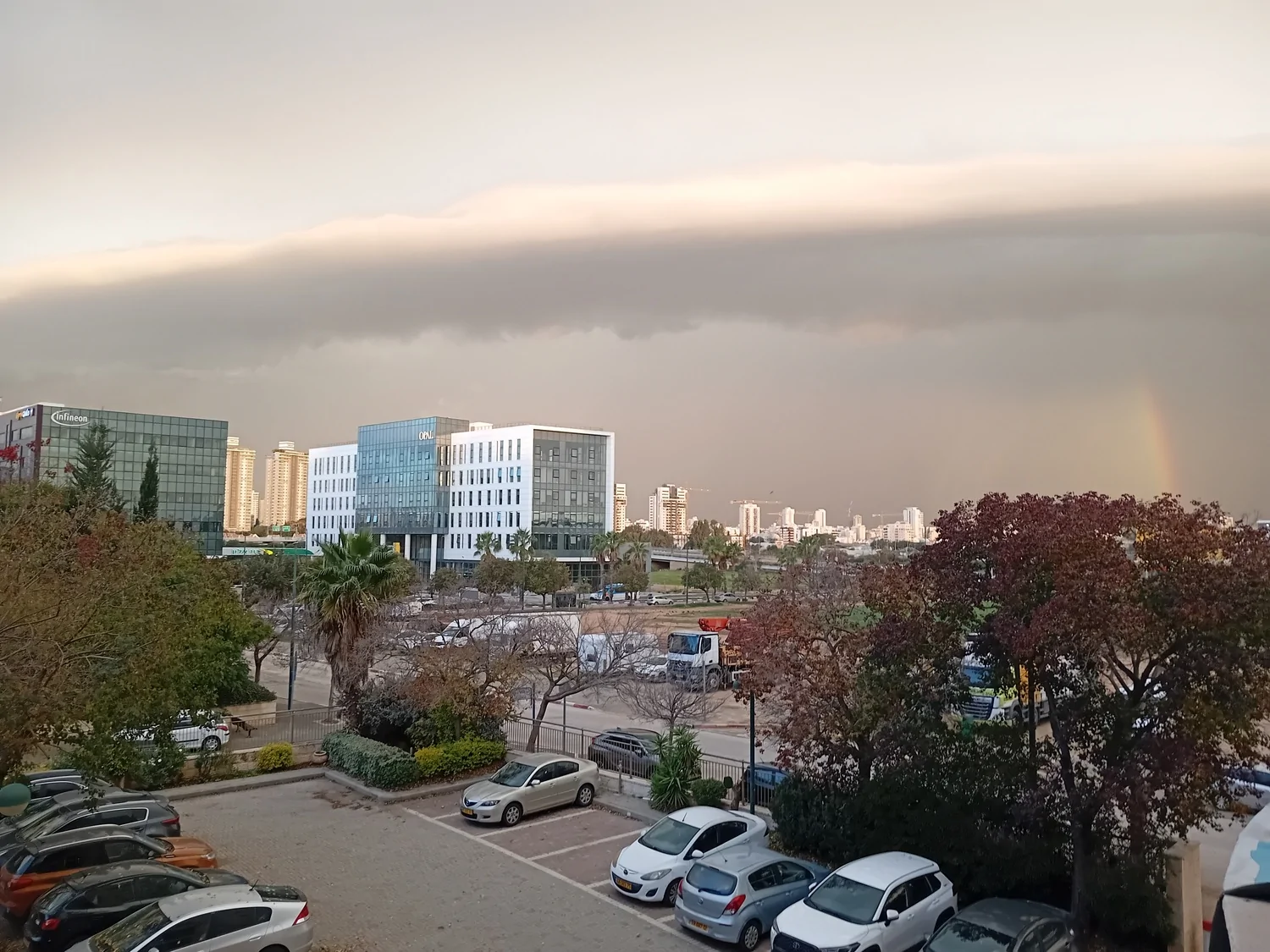- העננות מצפון לנתניה, עם קשת קטנה בצד נעם