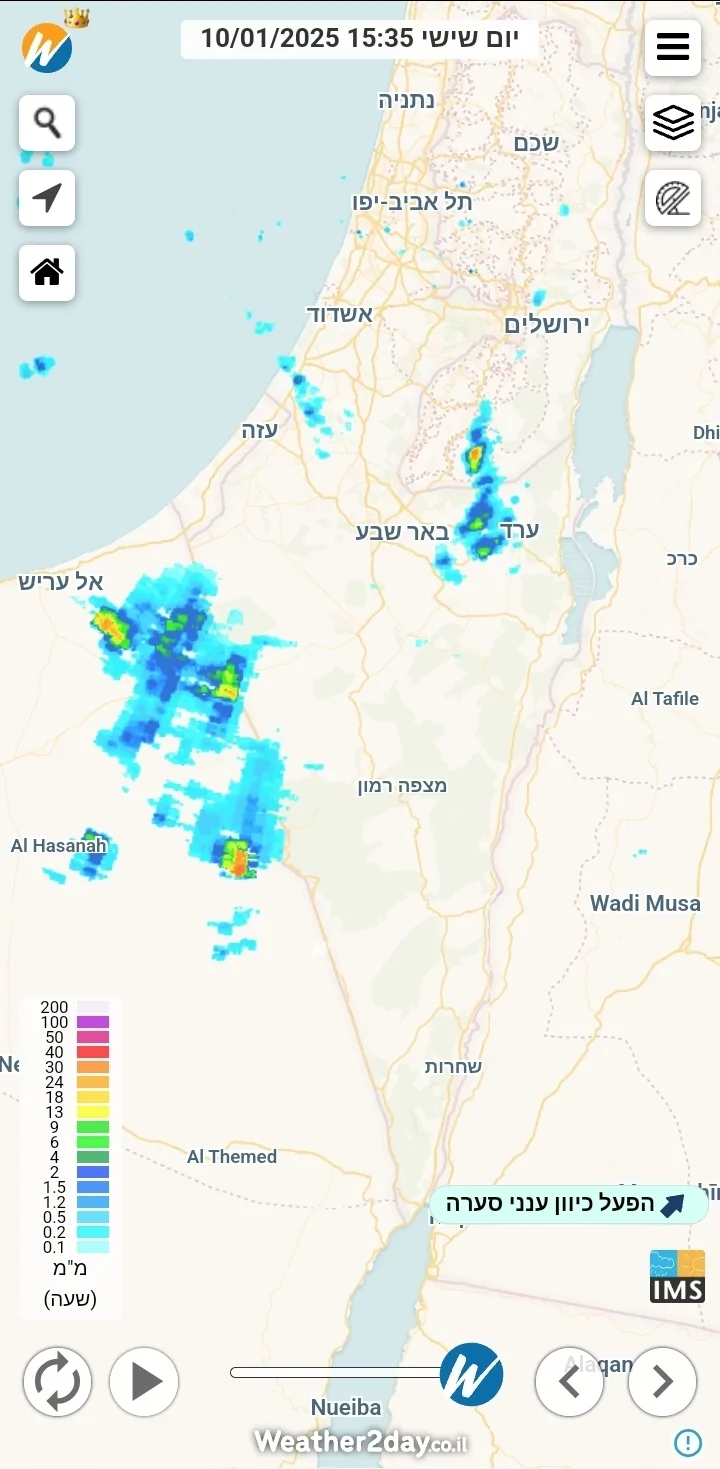 - יש גם עננים בין ערד לחברון שלא ממש מוזכרים באזהרה תומר - ירושלים