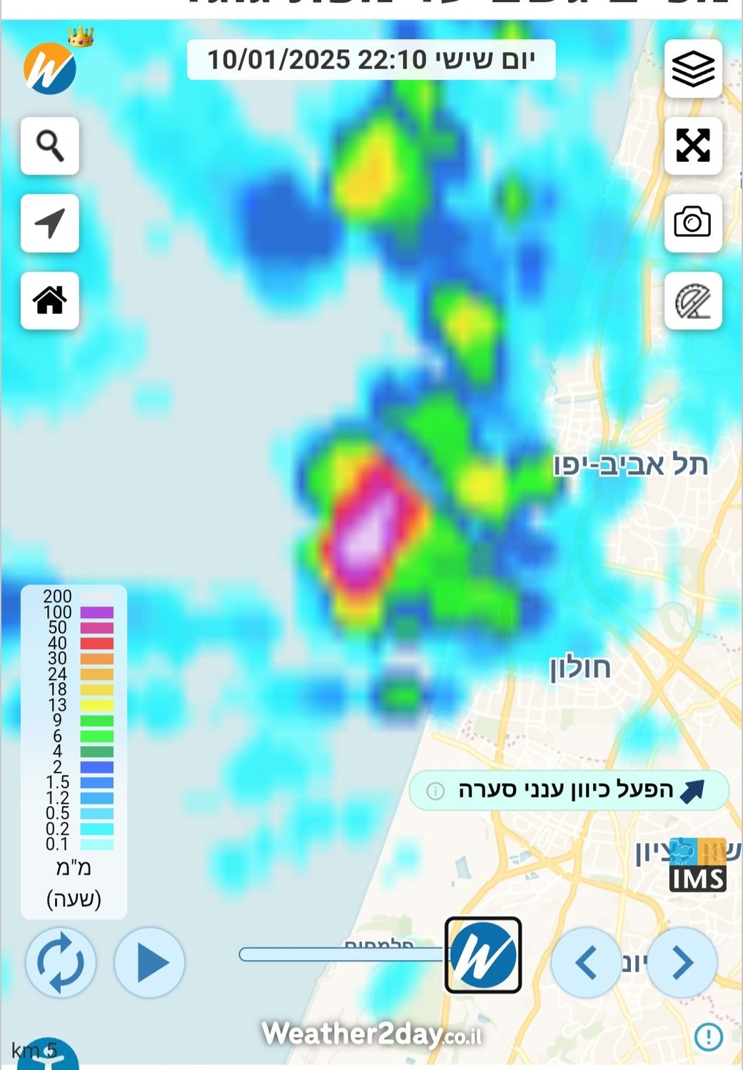 - גשם עם מעט ברקים ורעמים בתל אביב יואב