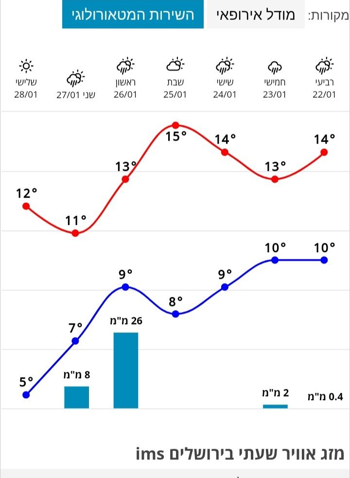 - בינתיים יבש אבל השרות המטאורולוגי צופה משהו ליום ראשון איתן