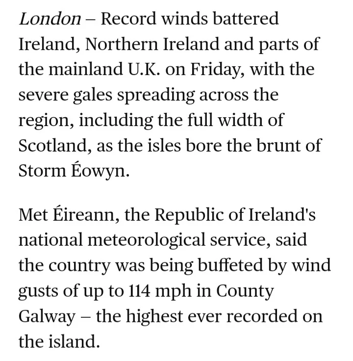 - מעניין שלמרות הסופה באירלנד צפויים רק כ 45 ממ המוביל הבטוח