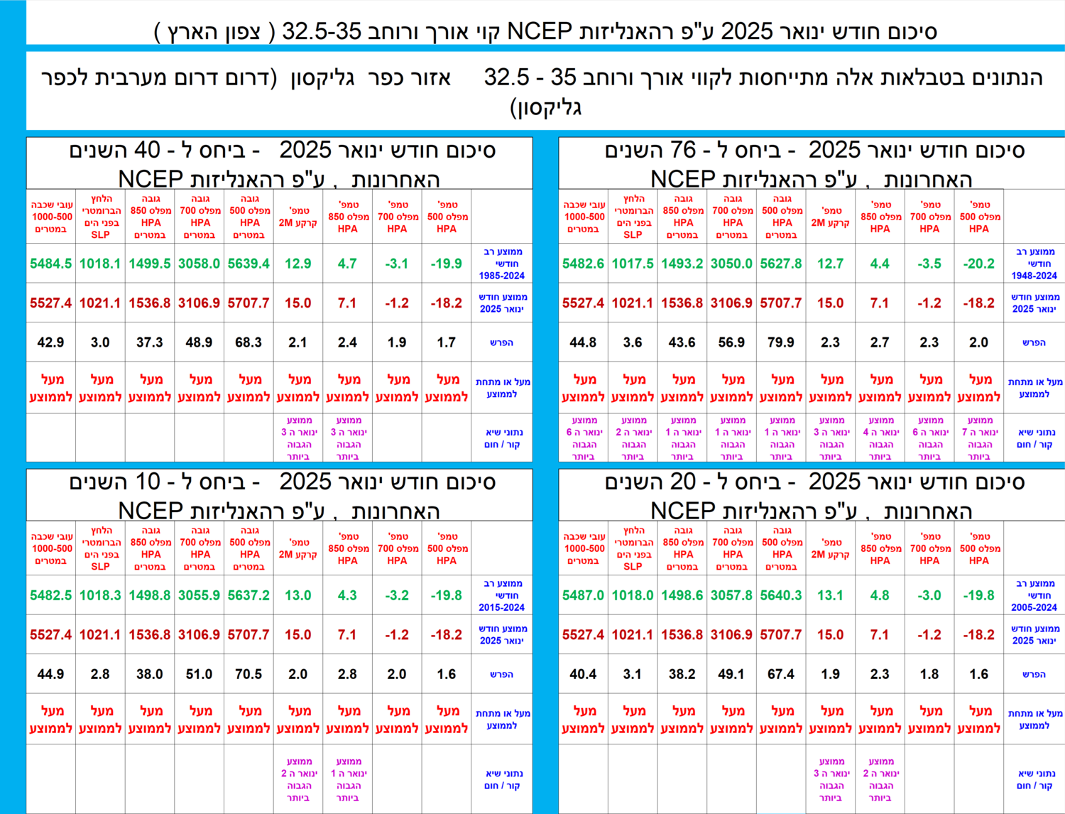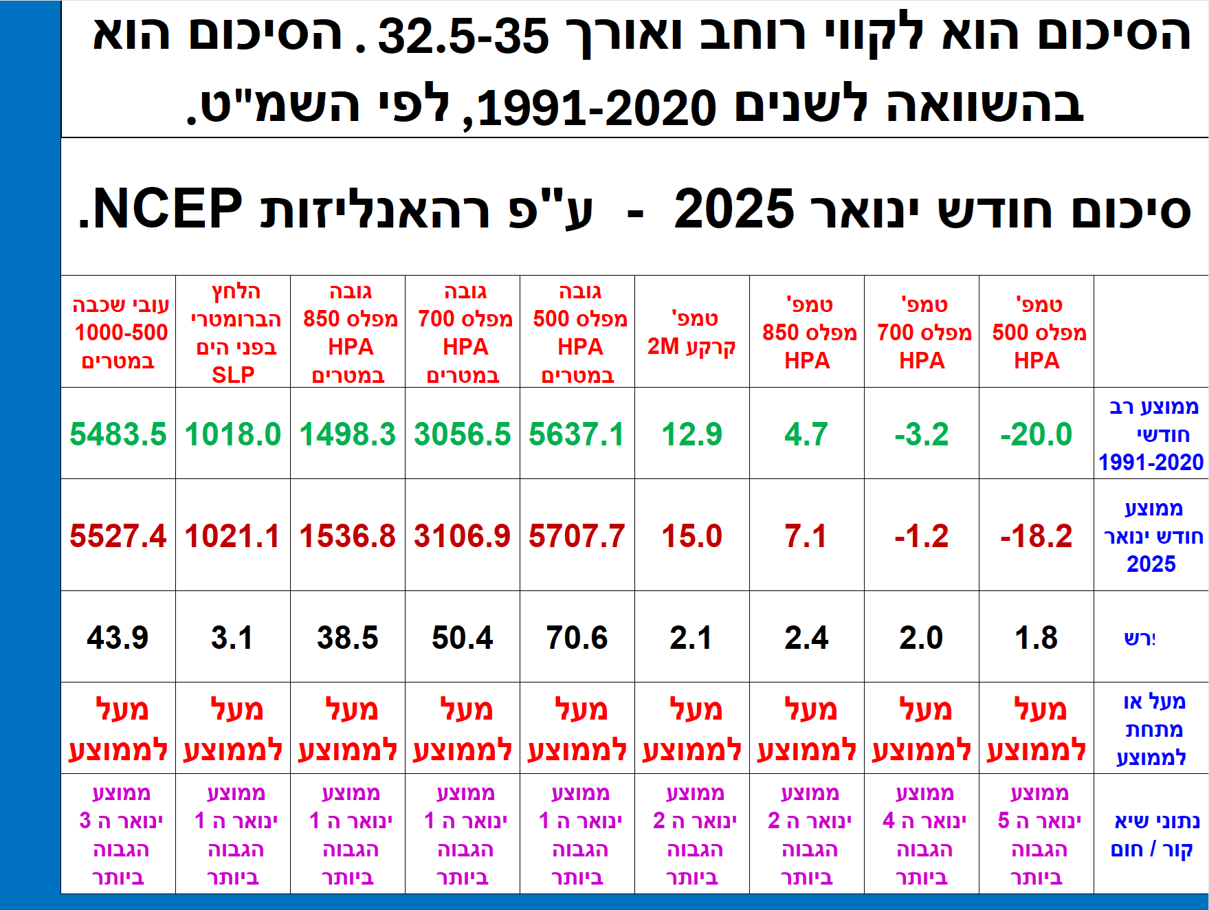 - סיכום חודש ינואר 2025 – ע"פ רהאנליזות NCEP - קווי אורך ורוחב : 35 – 32.5 – (צפון האר קוזוקרו אבי