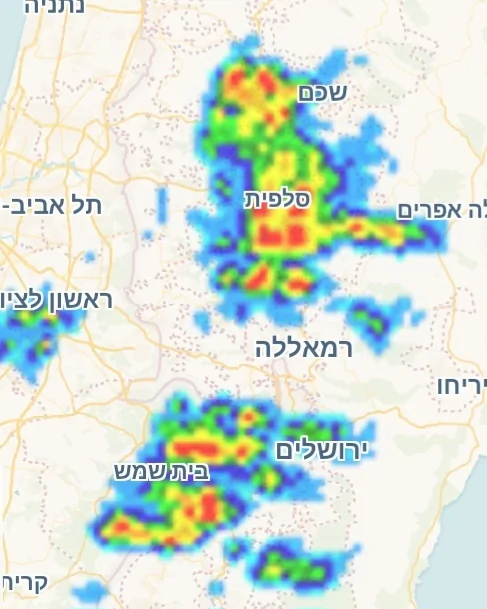 זה יוצר 'חורים' שבהם המדידות מראות יותר מאשר בסביבה, ויוצר רושם של גשם מאוד נקודתי. לא הייתי נותן לזה משקל של יותר מ-40% לעומת המכ"ם בשילוב הסופי.