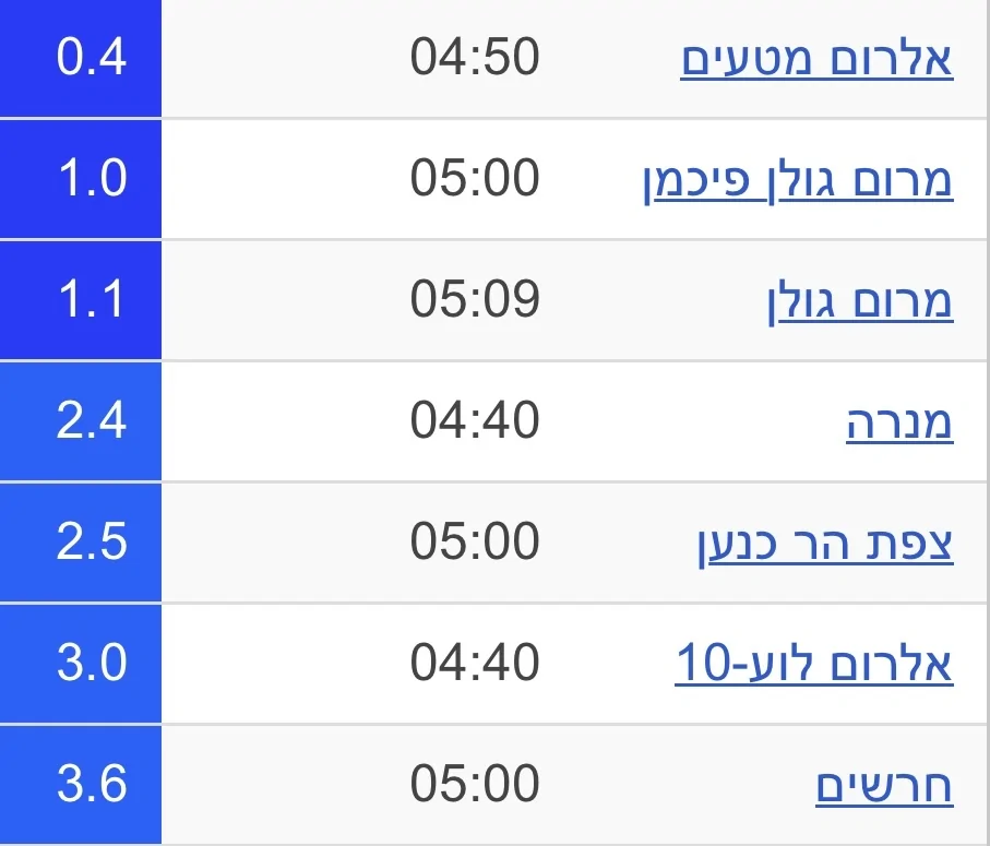 - 0.3° במטעי אל-רום על פי תצפיות האתר מתנאל