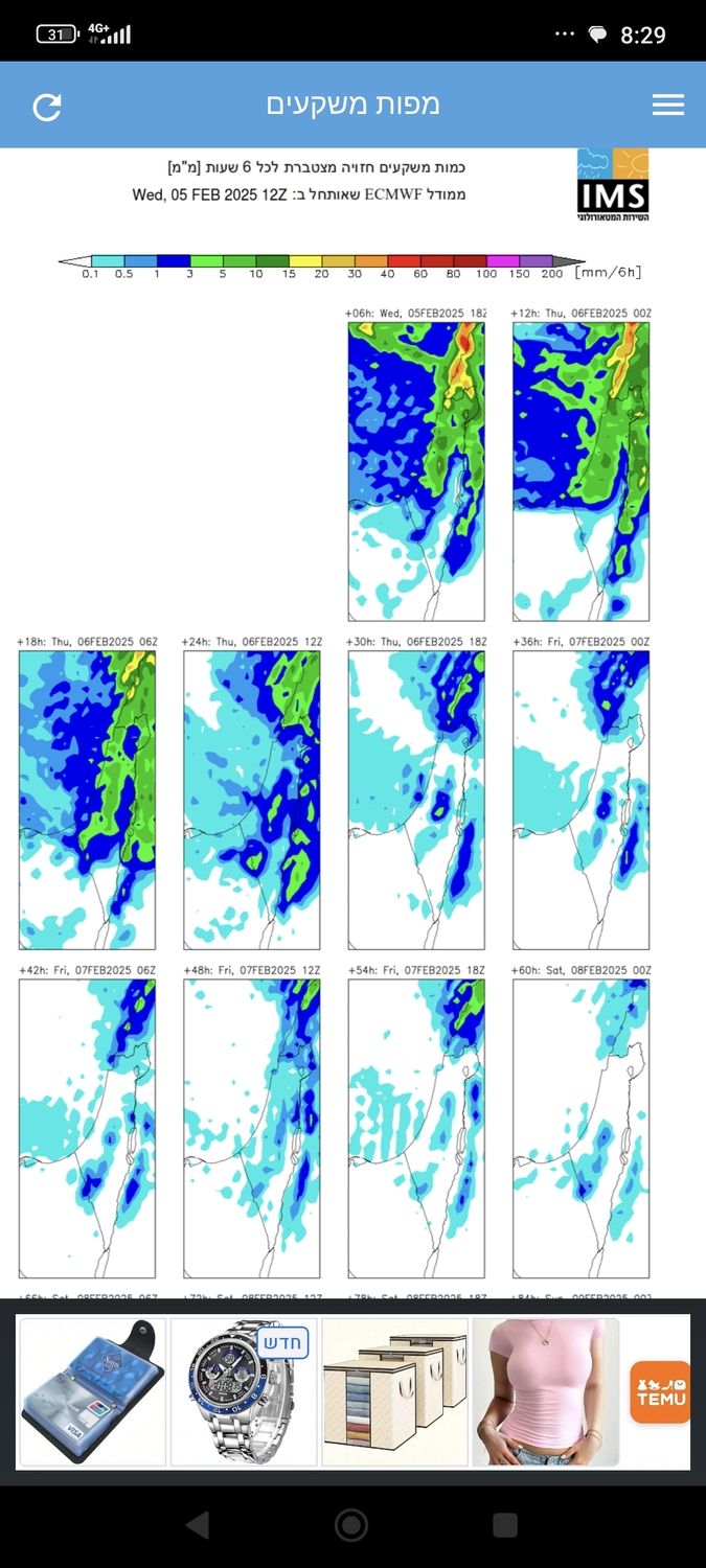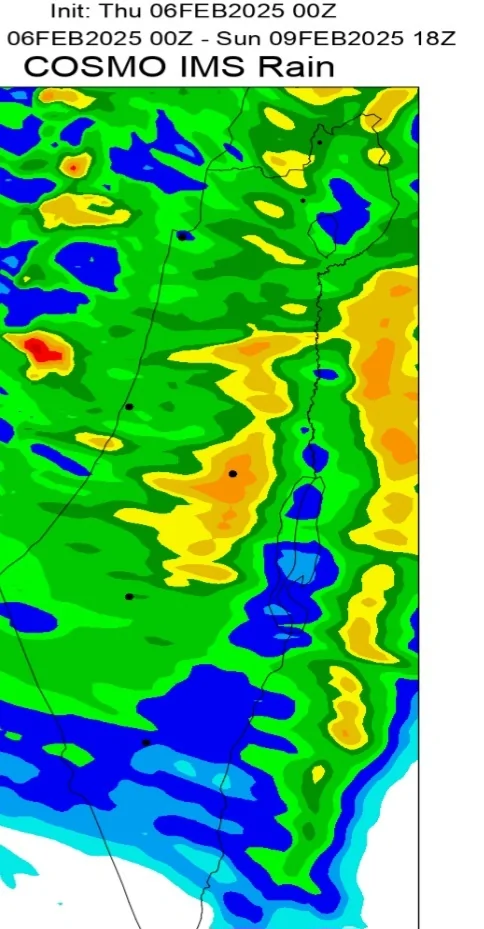 שהמערכת חזקה באופן משמעותי במרכז ..להבנתי זה נוגד מעט את כל המודלים שהצביעו על עוצמות דומיננטיות דווקא בצפון.... נראה זאת בסיום המערכת באמצעות כמויות המשקעים בכל מקום