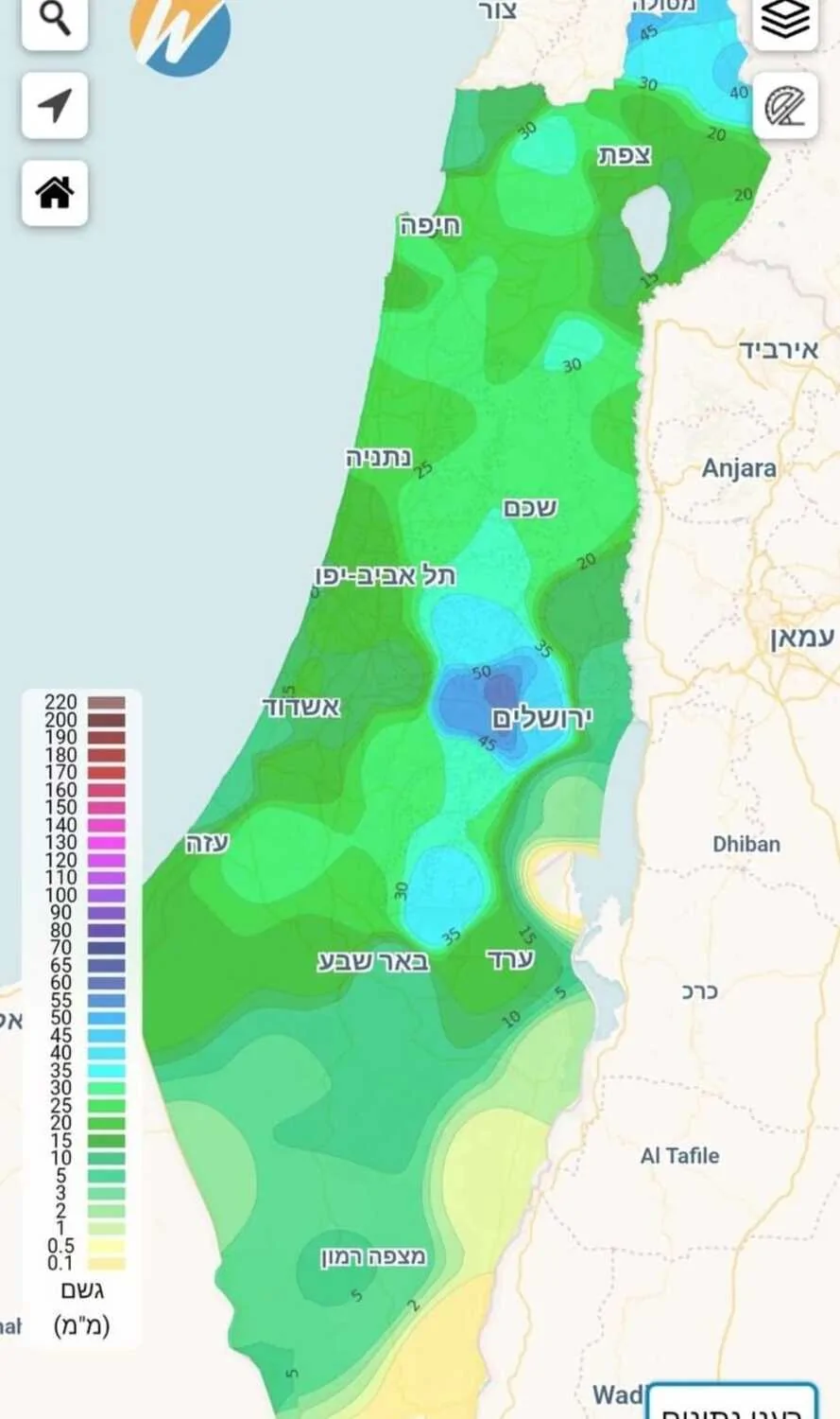 מסומן בעיגול אזור פרדס חנה... נמדד כאן 10 ממ בכל המערכת .אני מתקשה לדמיין שעוד 10 ממ יגיעו כדי להשלים פער של ממוצעי משקעים באזור כאן.... יש יותר הזוי מזה ????