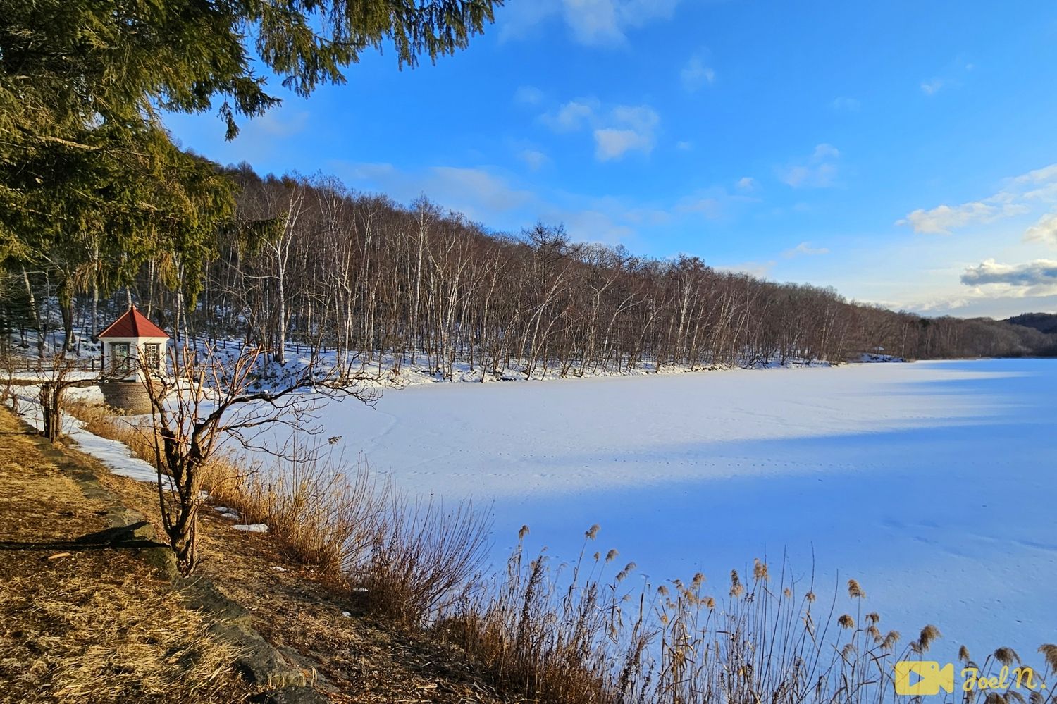 בסופו של דבר ראיתי כמה עקבות על השלג העמוק בדיוק מעל אחד השבילים שמגיעים למתחם האגמים (ראיתי לפי המיקום המדויק ב"גוגל מאפס"), אז לאחר מספר דקות אזרתי אומץ וטיפסתי מעל השלג כשכל הזמן נזהרתי לא לסטות לצדדים כי מספיקה שנייה של אי תשומת לב בשביל לטבוע בשלג העמוק, הטרי והרך במיוחד, לבסוף אחד האגמים היפהפיים ניגלו מול עיניי ושמחתי שבסופו של דבר הצלחתי להגיע אליו :)