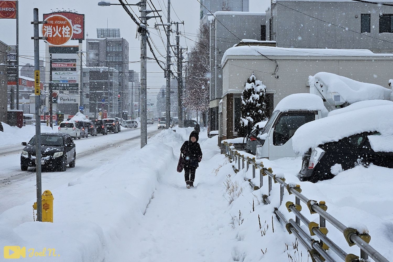 באחד מהימים יצאתי לאחד מחופי הים של העיר אישיקארי (Ishikari) שנמצאת בסמוך לסאפורו בזמן שירד שלג כבד שהפעם התמקד שם וגם בחלק המערבי והצפוני של העיר סאפורו (החלקים הקרובים יותר לים).