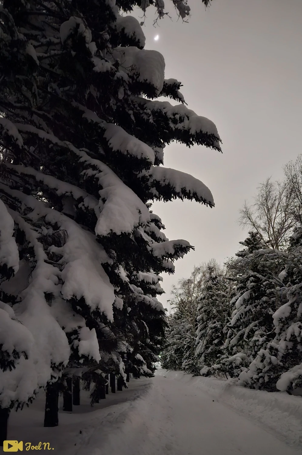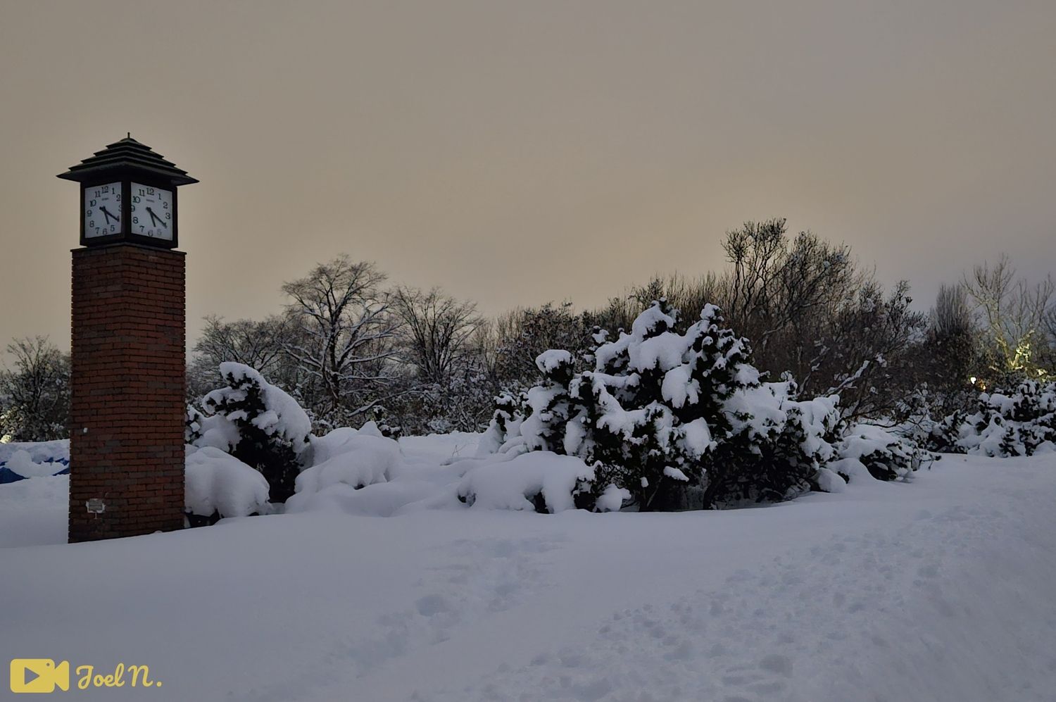 כשירדה החשכה ענני המשקעים חזרו בדרכם להמטיר עוד כמויות משמעותיות של שלגים ואפשר היה לשים לב שהעננים היו בהירים מאוד בגלל התאורה של העיר שמוחזרת מהשלגים ומאירה את העננים מעל.