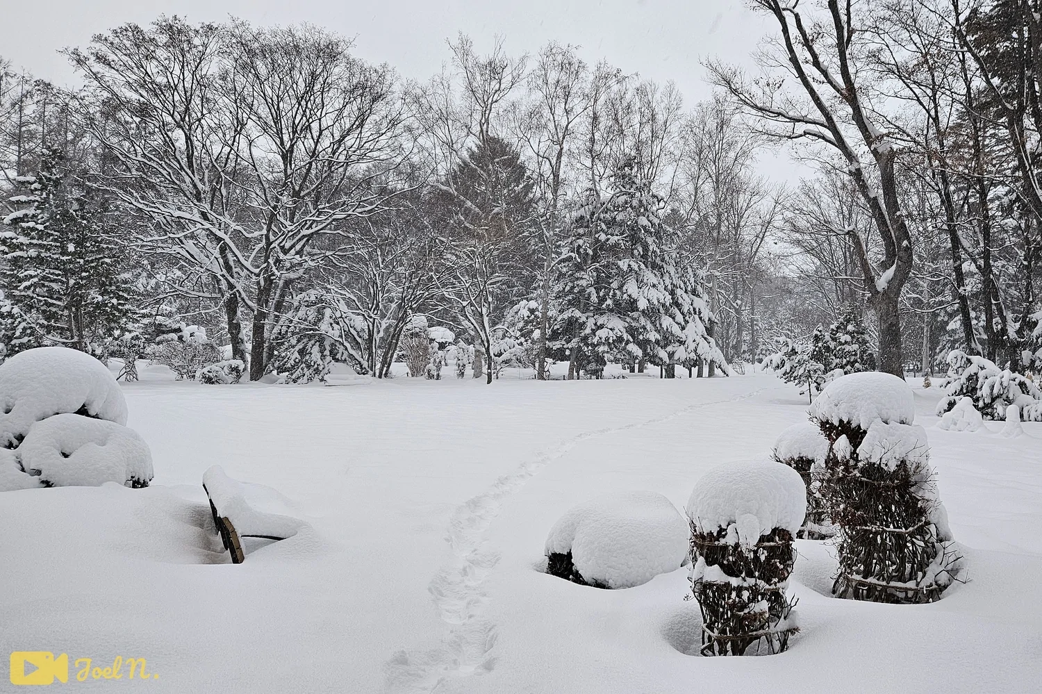 כשהגעתי אפשר היה לשים לב שחלק גדול מהפארק לא היה נגיש בשל כמויות השלגים שהגיעו בהם לגובה של מטר עד מטר וחצי על פני שטחים נרחבים, אך כן היה אפשרות ללכת בשבילים הראשיים שדאגו לפלס מהם את השלגים.