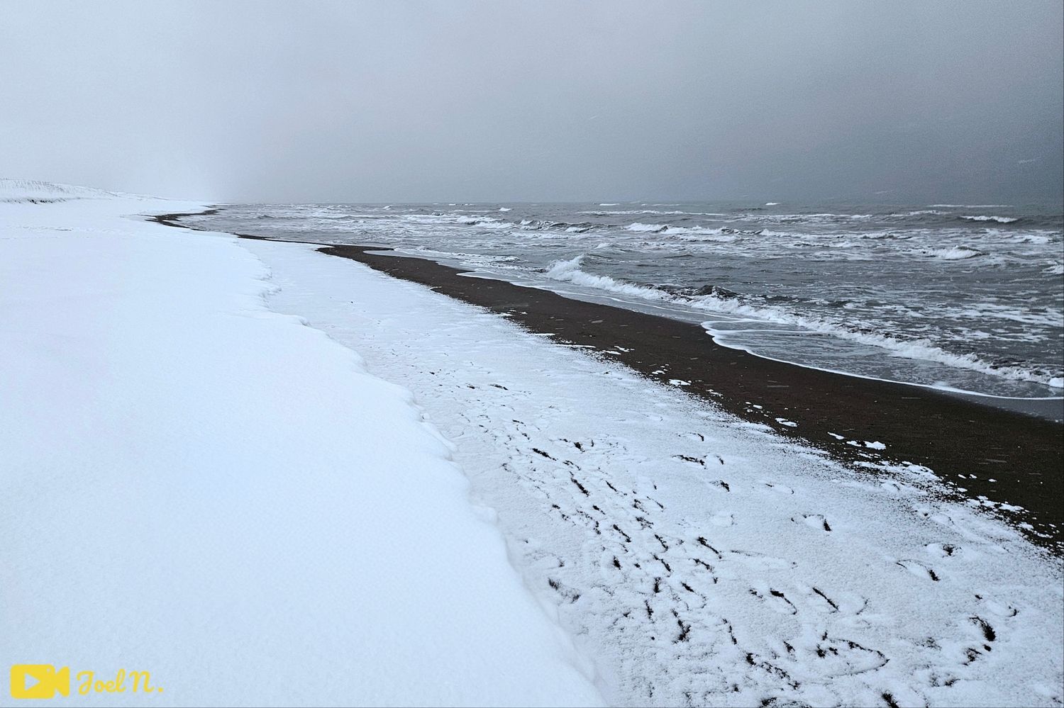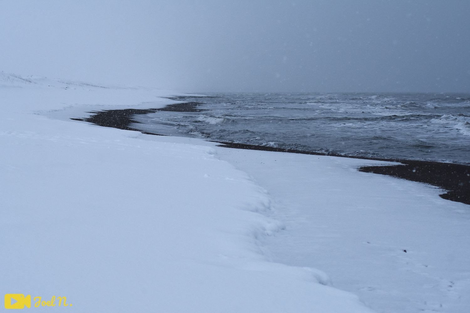 טיפסתי על הגבעות הללו כשהשלג לעתים הגיע עד לגובה הברכיים אך לאחר זמן קצר הים נחשף במלוא הדרו כשהשלגים ממשיכים לרדת. כשהגעתי לים הרגשתי כאילו אני נמצא בתוך סרט לא אמיתי. הייתי שם לחלוטין לבד באותו הזמן, בכל זאת כנראה שצריך להיות מטורף ללכת לים ביום של שלג כבד ועוד בשעה הקרובה לשקיעה, אך בתור חובב מזג אוויר וחובב קור ושלגים זאת היתה הזדמנות שהייתי חייב לנצל, בכל זאת לא כל יום חווים חוויה מטורפת שכזאת :)