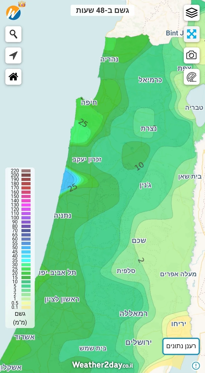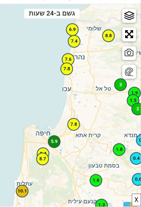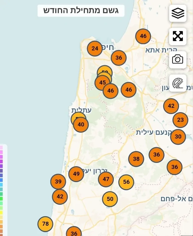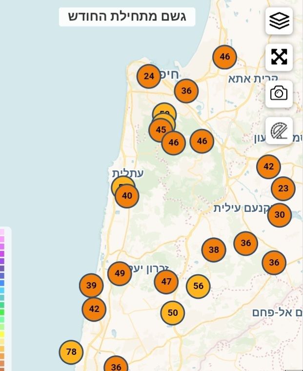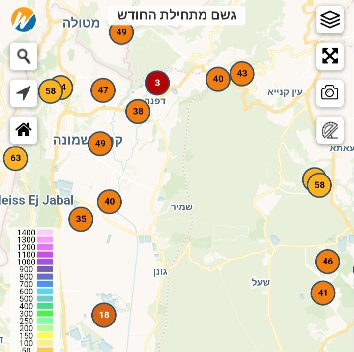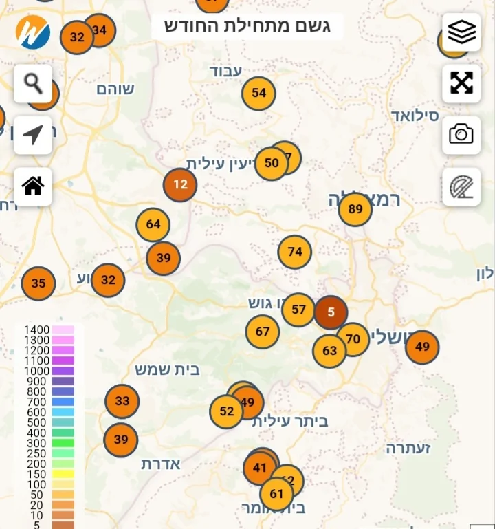 כמויות גשם למערכת החדשה 9-15/2/2025