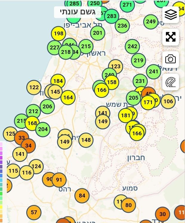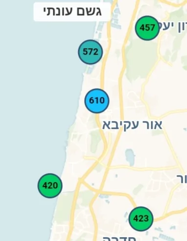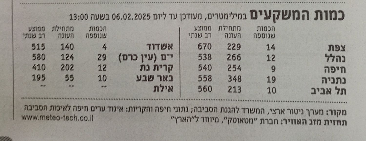 - הרצליה צפון עד 8:00 ירדו 5 מ"מ. עונתי 285 מ"מ יובל