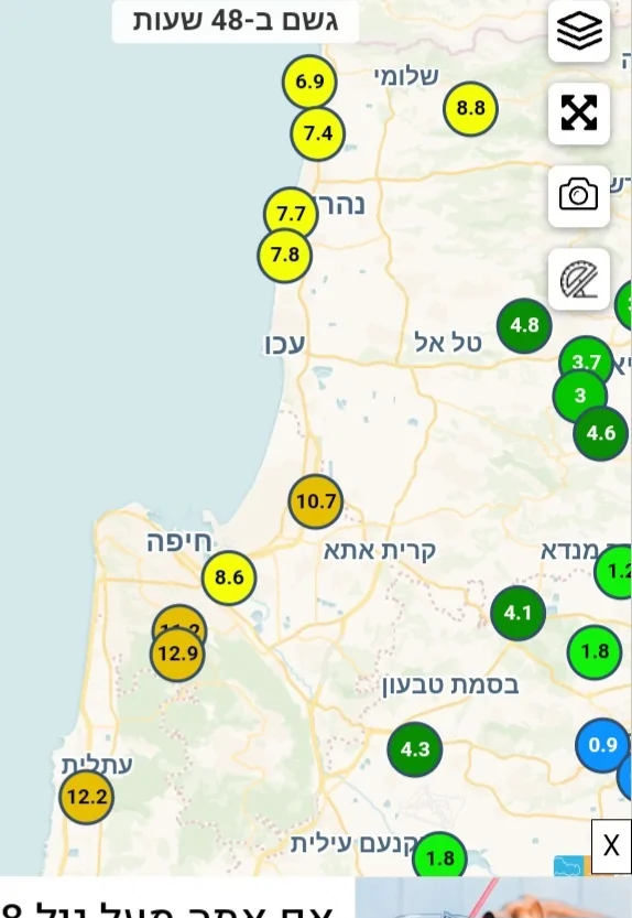 קצת דרומה התקרבו ל-20 ממ הבוקר