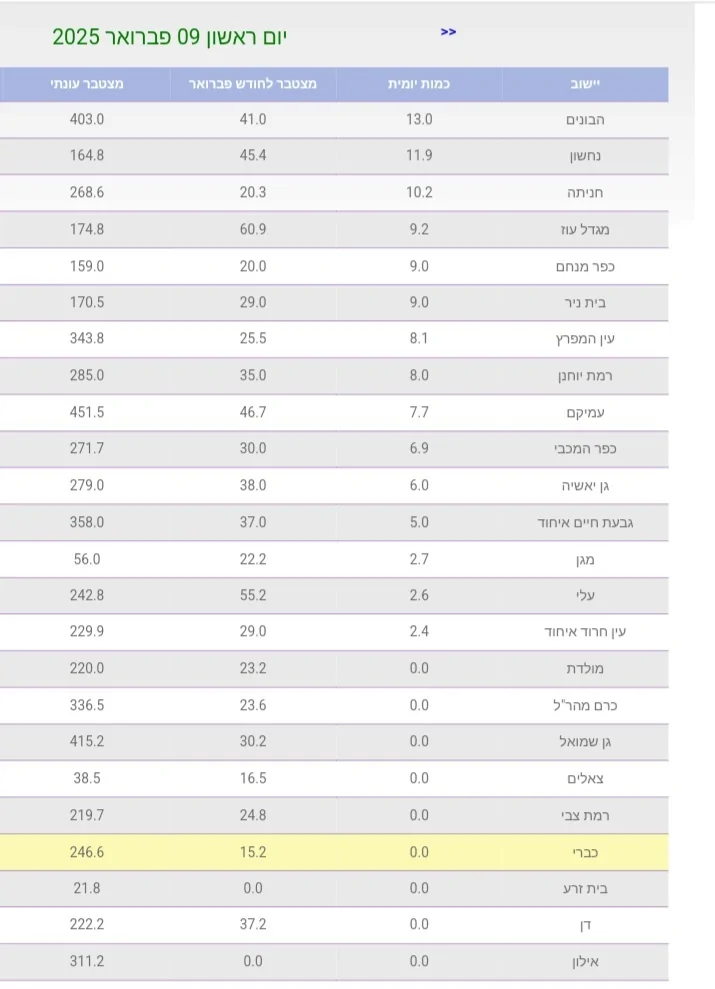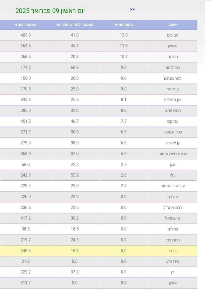 - כמויות גשם למערכת החדשה 9-15/2/2025 חנוך א