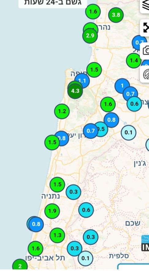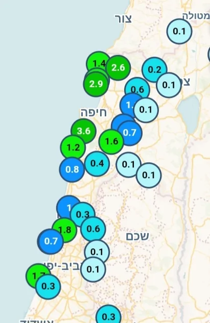 - מכת גשם יפה מצפון לתל אביב. עד 15 ממ חנוך א