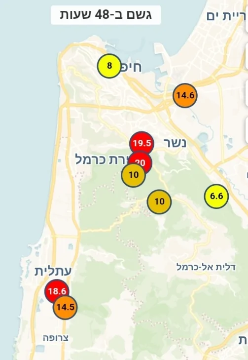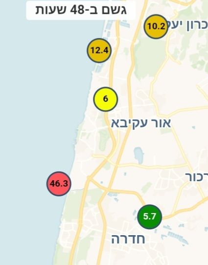 - חגיגה בחדרה למערכת הנוכחית, כמעט 50 מ"מ ביומיים Weather2day