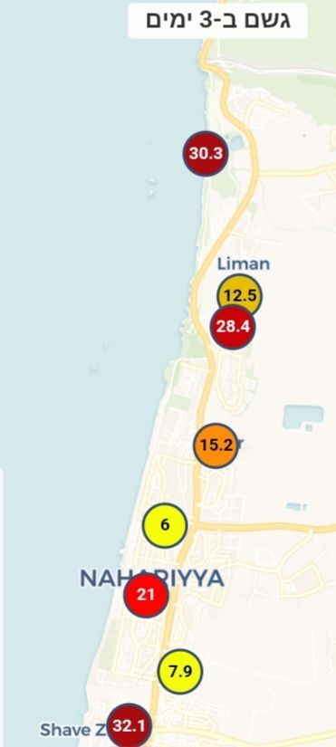 - בצרופה, גשם בעוצמות משתנות, לסירוגין מהבוקר יוסי