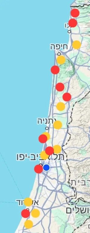 - תל אביב צפון ישן גשם חזק ורוחות בינוניות עד עזות פז