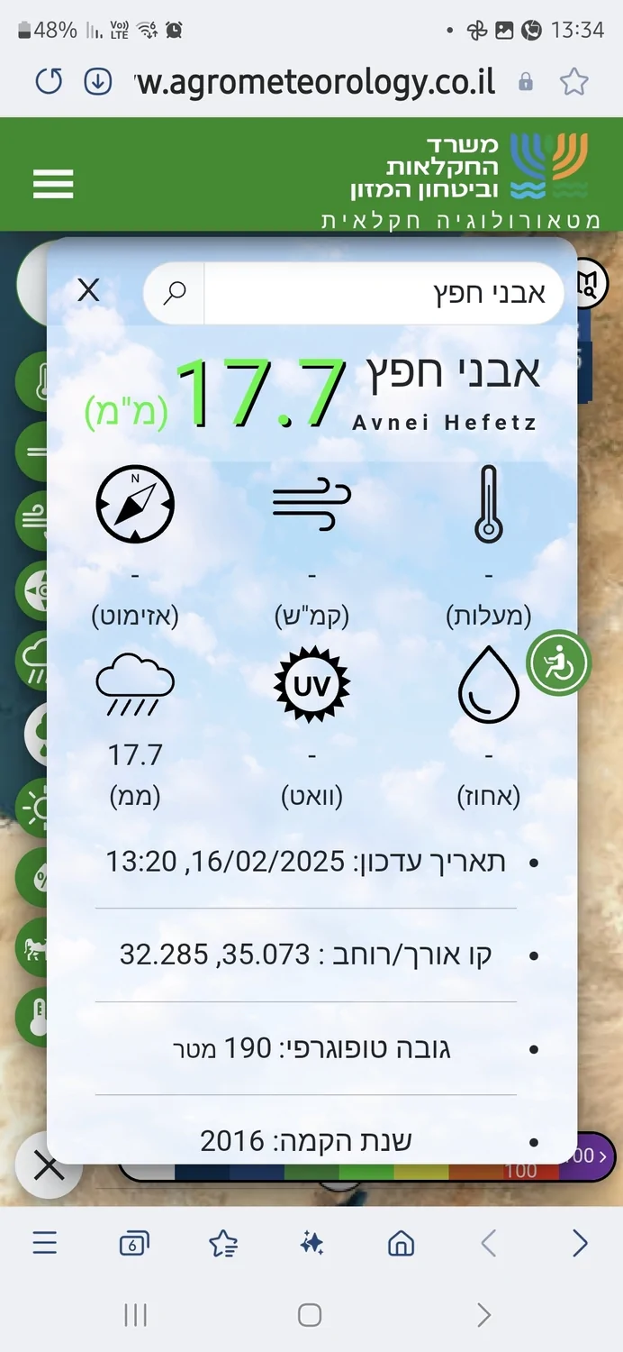 כמות הגשם שירדה בעמנואל היא 34 מילימטר מד ידני