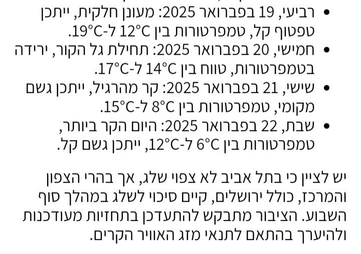 דיווחי מזג אוויר - יום שני 17/02/2025