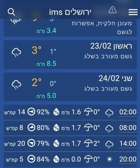 דרך אגב איסי עם שיפור ניכר אבל נראה לי יש לו באג בתחזית השלג למה הוא נראה עם שלג מקומות לא הגיוניים. ויש עוד כמה בעיות כמו כניסה מאוחרת של הקור
