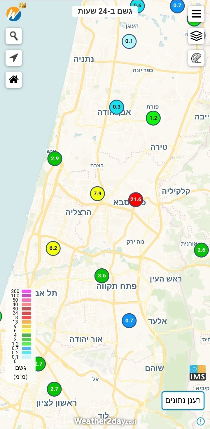 - כמויות המשקעים מתחילת המערכת Weather2day