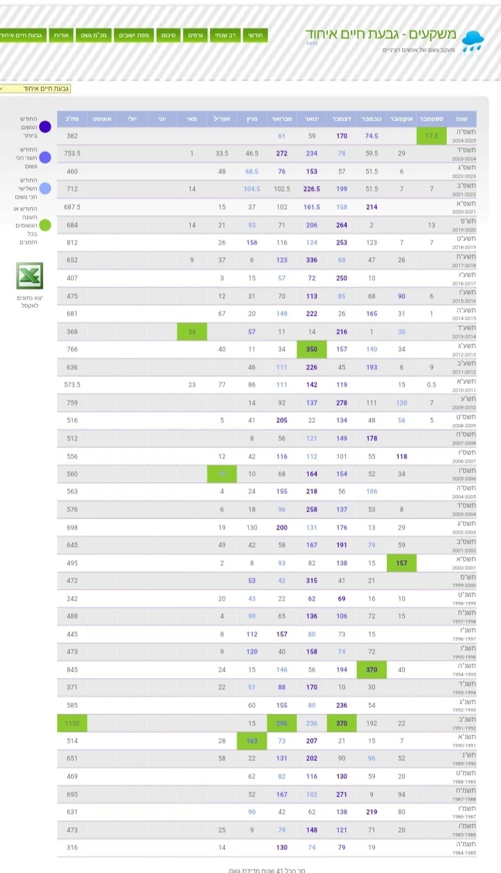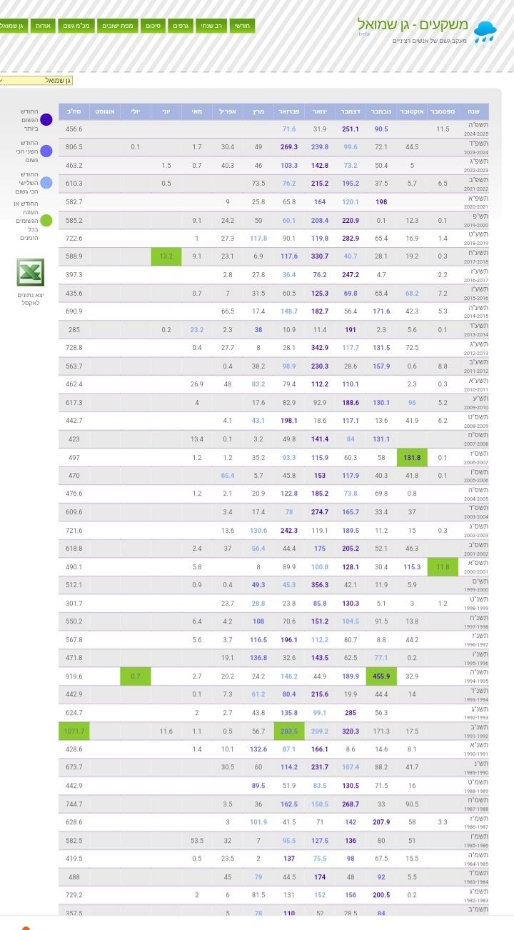 - כנס לאתר השמ"ט . כל השנים האחרונות היו גשומות מרחבית יובל