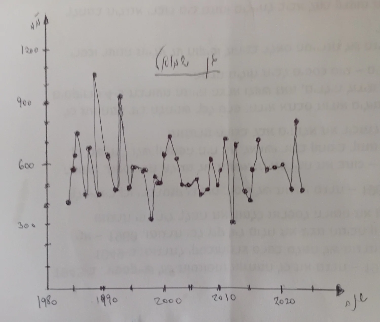 ואפילו יהיו עכשיו כמה שנות בצורת רצופות גם זה לא אומר כלום כי כבר בתנך יש אזכור לשנות בצורת רצופות ואז כידוע עוד לא דיברו על התחממות גלובאלית או שינויי אקלים