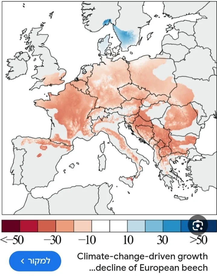 עץ בוק Beech הולך ודועך בדרום אירופה ולעומת זאת מופיע יותר ויותר בסקנדינביה