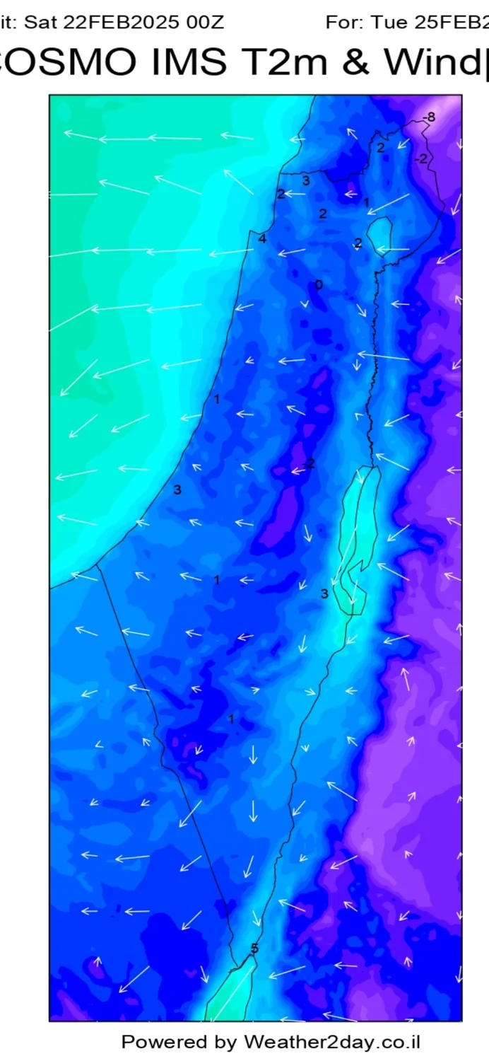 - קוסמו צופה ביום שלישי לפנות בוקר מינוס 2 בירושלים, בין מעלה ל4 בחוף אין שם