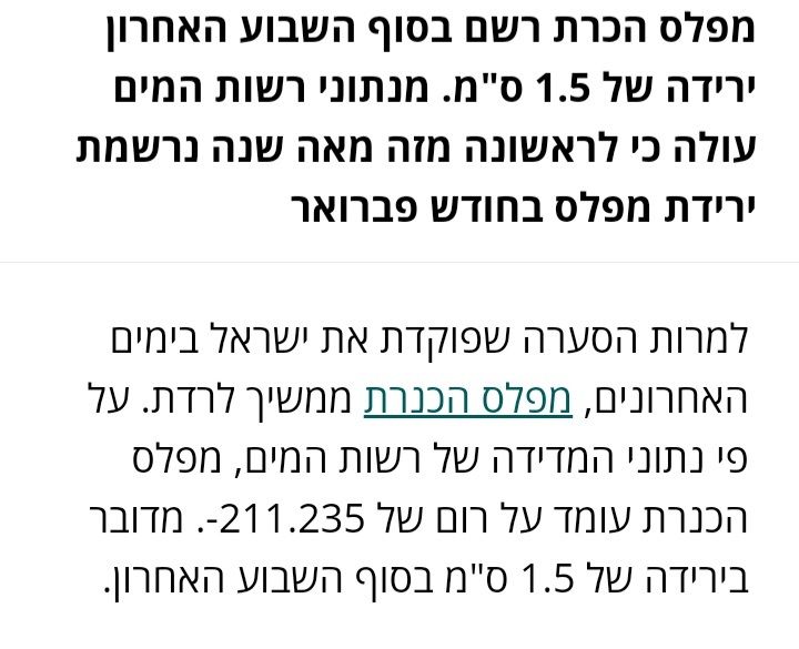 גם בשנים הטובות שהיו לאחרונה, וגם בשנים הרעות שהיו לפניהן, מבחינת אחוזים אגן הניקוז של הכנרת עם אחוזים יותר נמוכים משאר הצפון. כבר הרבה שנים שהרוח המזרחית שולטת בחורפים ולא נותנת לגשם להכנס. כבר ממש נדיר שיורד שם גשם חזק, בשביל לשמוע רעמים כדאי לחכות לאפיק מים סוף (שגם פחות מככב שם בשנים האחרונות) בקיצור, דיברתם הרבה על האם יש שינוי, אין שינוי במזג אוויר, דיברתם על מדבור, בצפון מזרח הארץ, העניינים האלה מורגשים היטב.