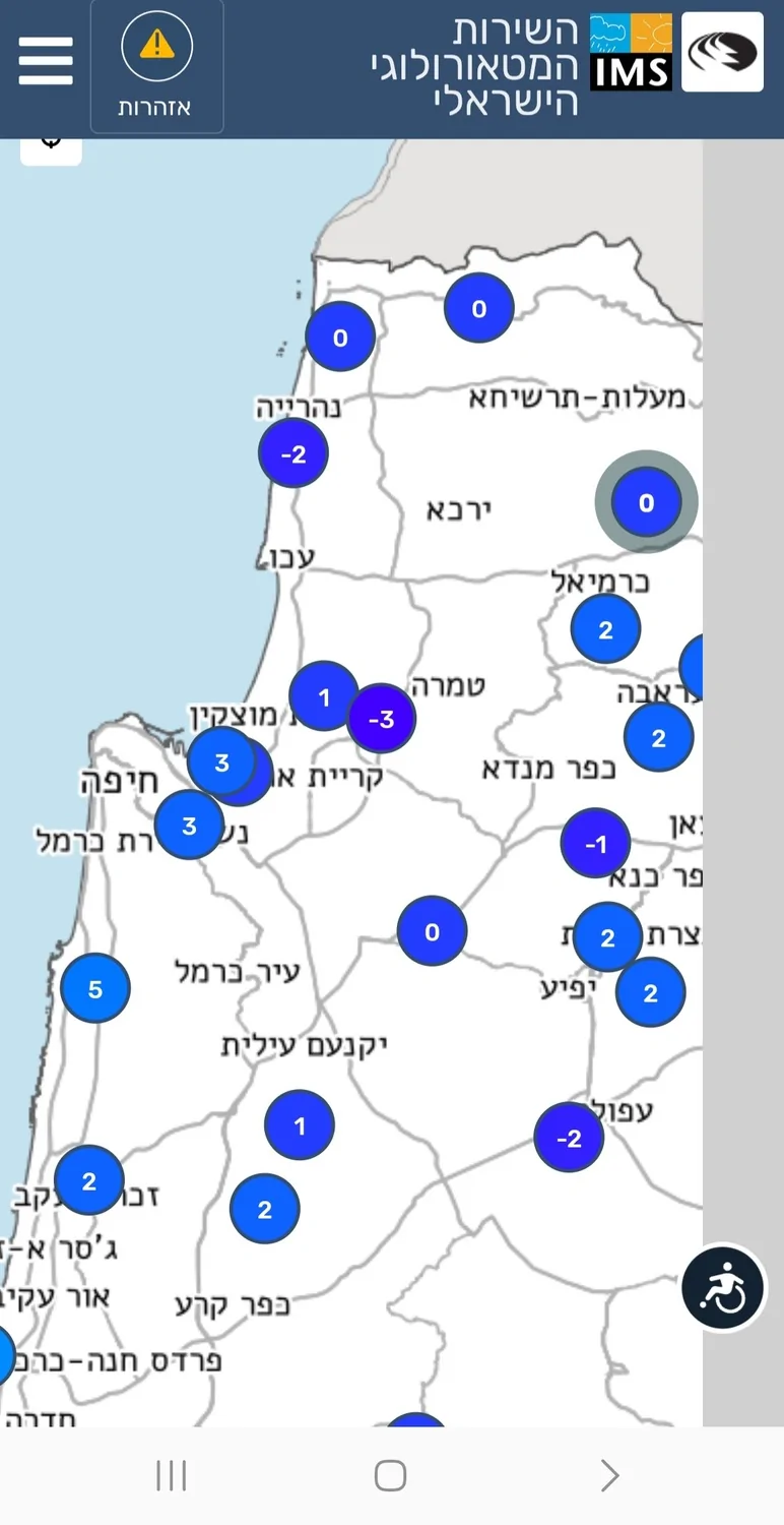 מינוס 2 בכפר שמריהו ובקריות, מינוס 3 בעכו. בעומק גוש דן על סף קיפאון.