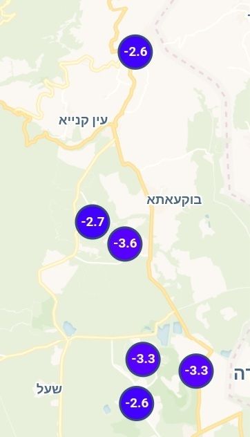 - ירושלים מרכז 1.1 מעלות, פתח תקווה מעלה בלבד אין שם