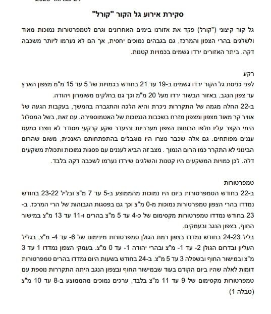 ואולי יהיה יותר קר בחלק מהתחנות שלא הרשימו אתמול עקב תנאים כאלה ואחרים. יהיה מעניין לראות את מרום גולן היום, למרות שבכל מקרה פוטנציאל הקור של המערכת לא מומש שם.