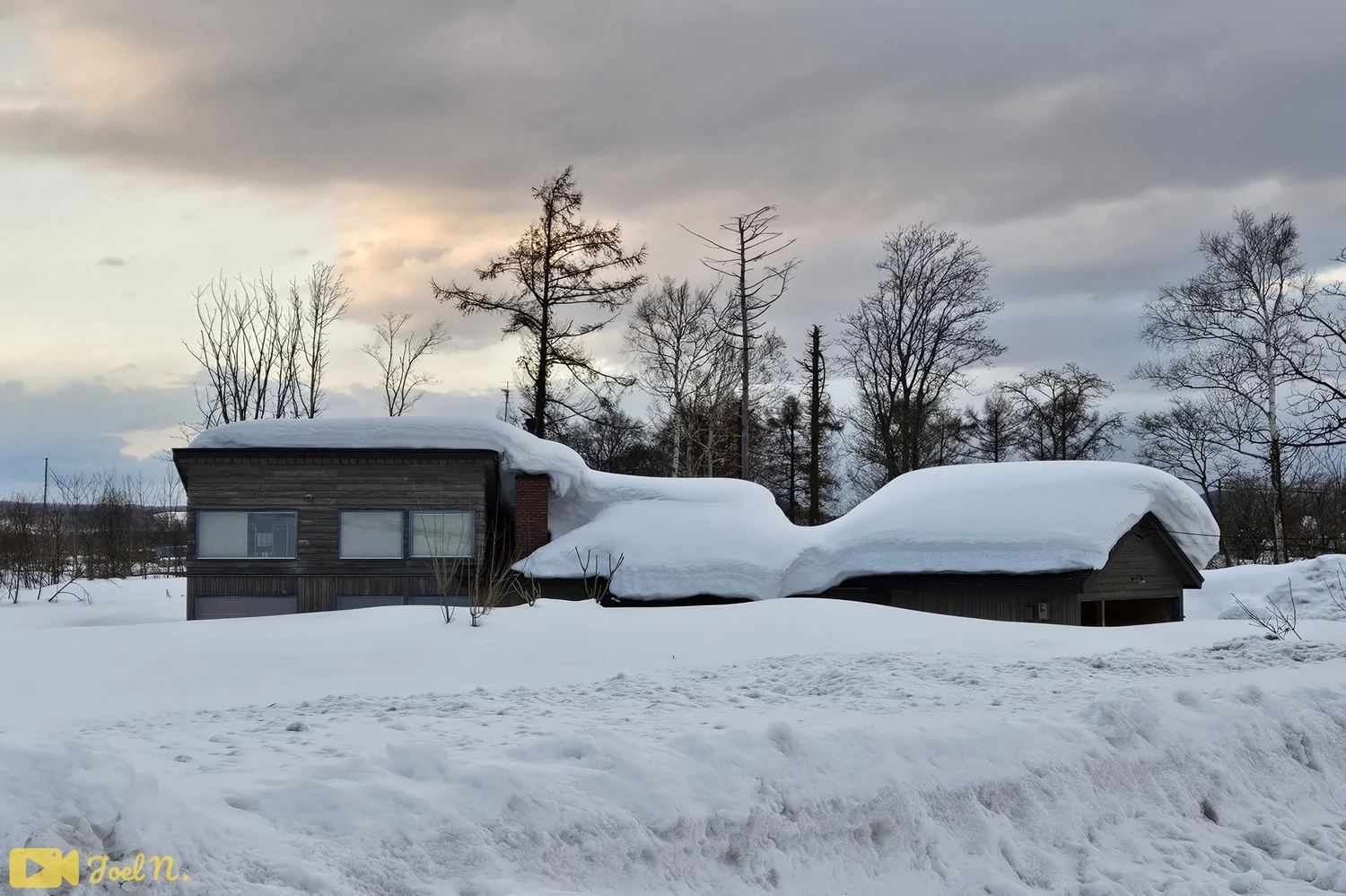 בתמונה הראשונה ניתן לראות מבנים עם הגגות הייחודים שהוזכרו קודם, הם עשויים מפח צבעוני במקום רעפים - דבר שנדיר בהוקאידו. גגות הפח גורמים לשלג להחליק הרבה יותר בקלות ומונעים עומס מיותר של שלג כבד מעל המבנים.