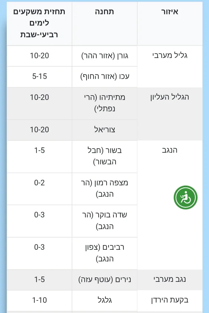 2. הצפי ליום רביעי לילה וחמישי עלה מעט