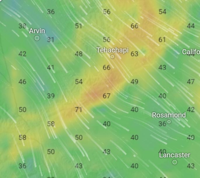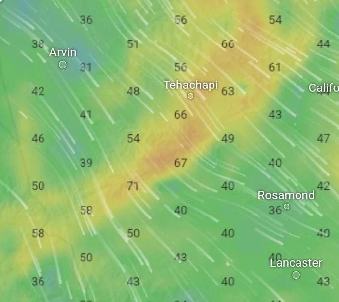 המצב החריג הזה גורם למצב חריג נוסף שבו רוחות חזקות בהרים וחלשות משני הצדדים. קצת כמו כמו המצב שקיים במעברי הרים גבוהים: הרבה אוויר מנסה להידחק דרך מרחב קטן וגורם לרוחות מאוד חזקות. זו הסיבה שהמקום המועדף למיקום טורבינות רוח הוא במעברי הרים
