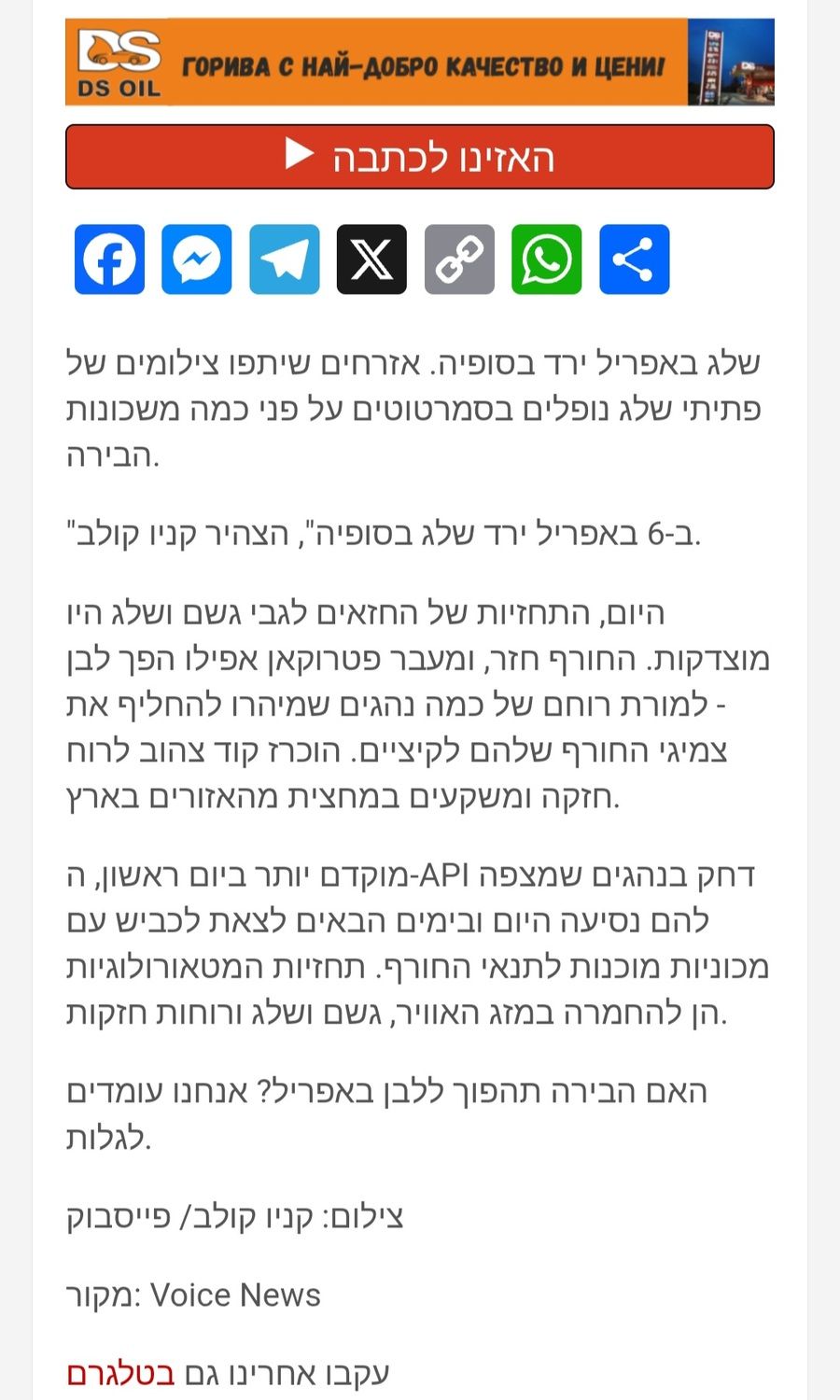 - דיווחי מזג אוויר - יום ראשון 06/04/2025 מתנאל